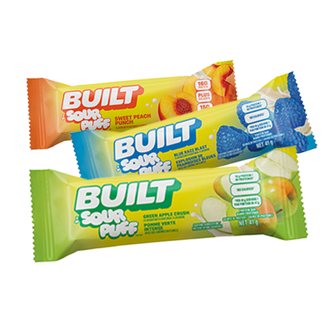 BUILT SOUR PUFFs: Green Apple, Blue Razz, Sweet Peach